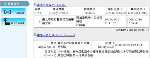 結果兩輛和平派出所的警用摩托車來巡之後,馬上騎走.我立刻上網追蹤.結果說是處理完畢已經結案.我下樓一看每部摩托車都大剌剌的停在原處,好像又多了兩輛"我最聰明"的摩托車.我再打1999,服務人員也不知為何,又幫我報了一次.