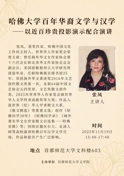 張翎 雲端講座 小說家眼中的城市書寫 哈佛中國文化工作坊 世界華人作家筆會 聯席主持 2025年9月13日晨 =美東9月12晚 -