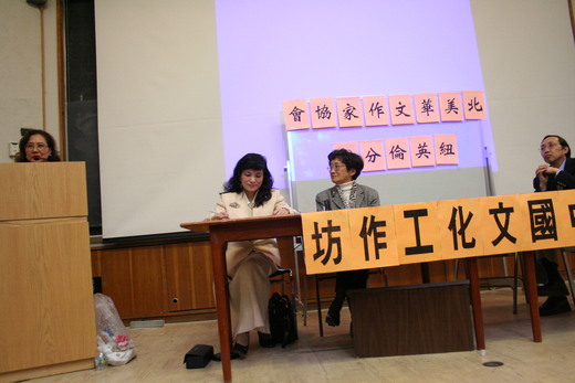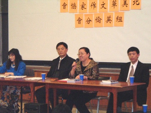 下圖﹕美南文心社社長陳瑞琳﹐盧新華等2005 哈佛演講