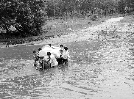 三輪車艱難地18次駛過漫水橋來到宋莊時,已是早上8點多了