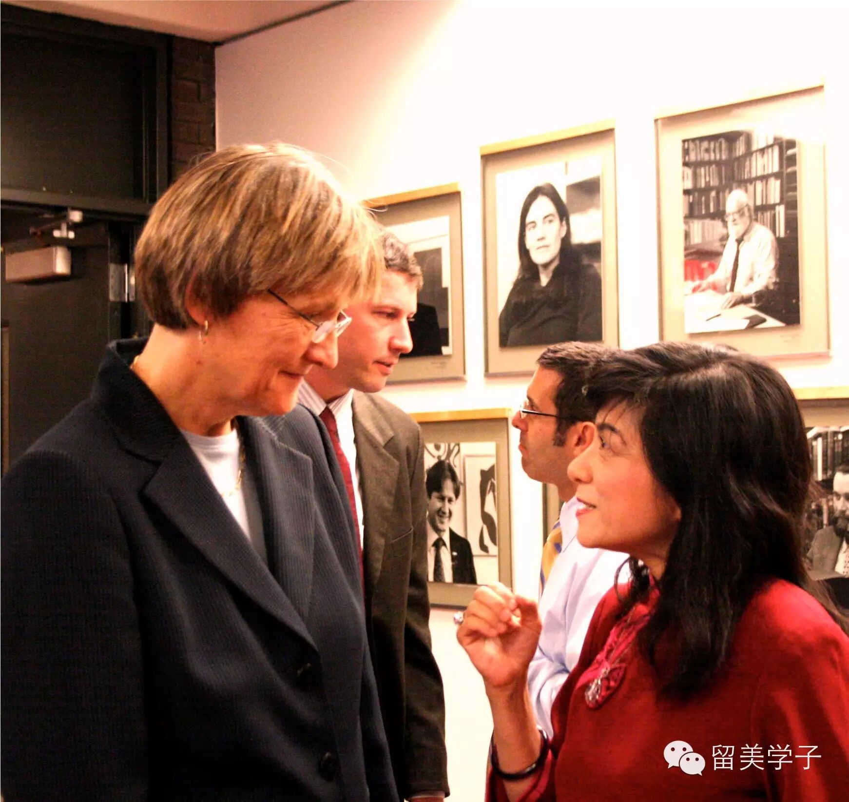 (哈佛校长佛斯特与张凤在盛会中交谈)