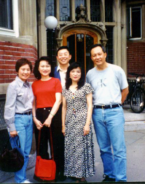 上圖﹕張鳳引領張錯伉儷 出版家朱寶龍夫婦攝於張愛玲哈佛故居