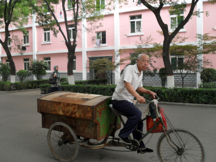 又,中間後頭那張新舊交錯代表的踩車老先生,看起來幾分斯文書卷氣哩。