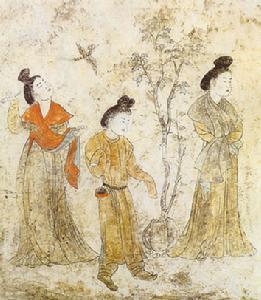 章懷太子墓中的觀鳥捕蟬圖﹐亦與永泰公主墓中宮女圖相映成趣...