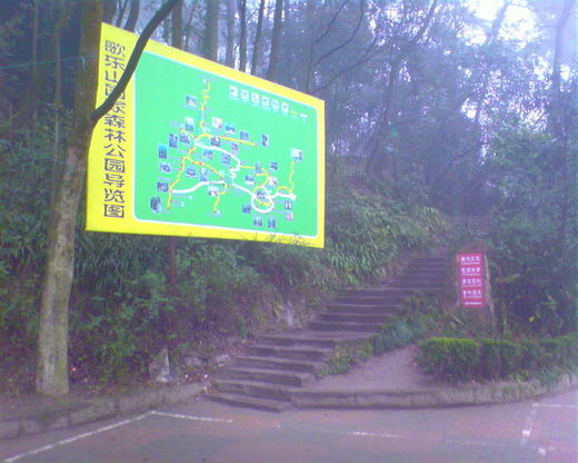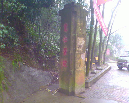 歌樂山果然草木蔥蘢﹐但是我們找來找去只在山腰找到一家精神病院。誰知道﹖說不定我就是在精神病院生的﹖那也不錯﹗正準備照相﹐開車的張師傅(四川姓張的人特多﹐阿貓阿狗都姓張)跑過來說找到了。原來他問了當地人﹐說山頂有國民黨的中央醫院﹐解放後改名為寬仁醫院(侯寬仁的寬仁)﹐現在已經關閉﹐但是還留下一根石柱。