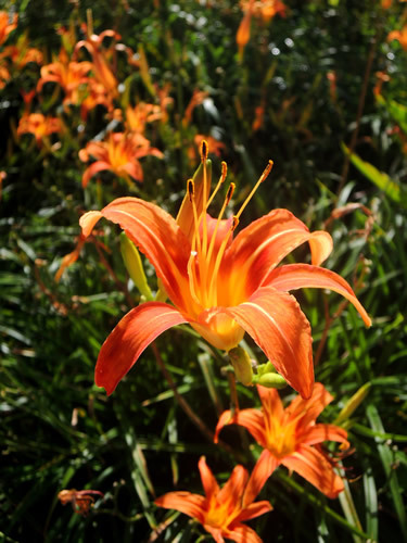 南投日月潭金針花田(日月潭頭社活盆地休閒農業園區)的栽種契機始於921大地震(1999年)後的農業轉型,經過多年努力,已發展成相當具代表性的「金針花園區」,據說有超過200種以上的金針花品種,除了常見的黃、橘色之外,還有紅、粉紅、紫黃色…等多種顏色,享有「七彩金針花」的美名。