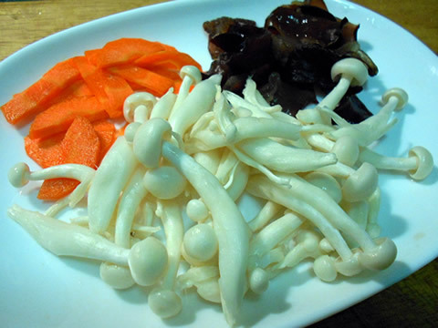 如何?看起來有沒有很好吃?其實這道菜很簡單,有烹調經驗的人應該連做法都不用看,重點在配料,紅蘿蔔、木耳、美白菇都是營養的好食材,鯛魚和里肌肉,一海一陸的搭配也相當得宜,至於主角「美人心」,有些微的脆度但無韭菜的辛辣味,整道菜吃起來清爽可口,真 的是很不錯!