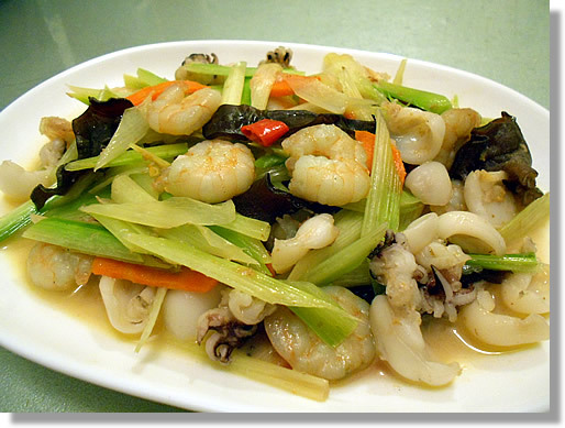由於「美人心」脆口但無特殊氣味,所以很容易和各種食材搭配,我把第一道的主食材換成蝦仁與小花枝,配料不變,完成的這道【海鮮美人心】,鮮美滋味百分百喔!