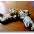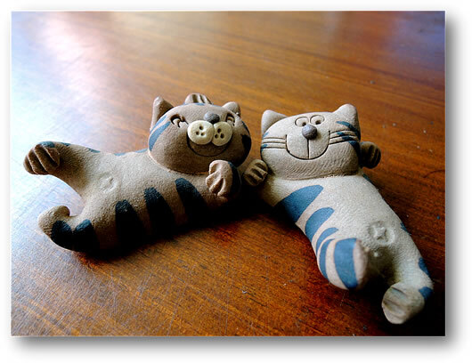 從北海道帶回的兩隻陶(淘)貓,可愛的表情當真是〝淘〞氣十足,心情不好的時候看看牠們,感覺牠倆擠眉弄眼、手腳並用的想逗我開心~雖是自己的想像,但,何不這麼想? (=^_^=)