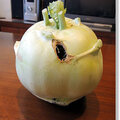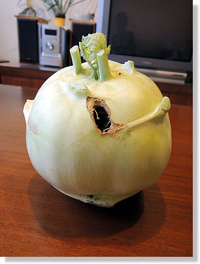 媽媽用宅急便寄來了多樣自己種的蔬菜,其中「大頭菜」被蟲咬了一個大洞,媽媽在電話那頭說:「那是蟲咬的,挖掉就好,沒壞~」,我說:「沒關係,我會處理。」