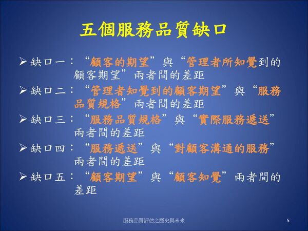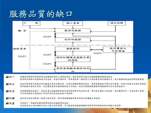 服務的五個缺口模式在照護服務品質運用-服務品質與顧客滿意講義