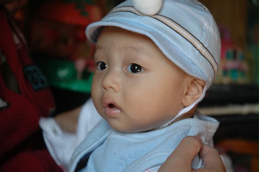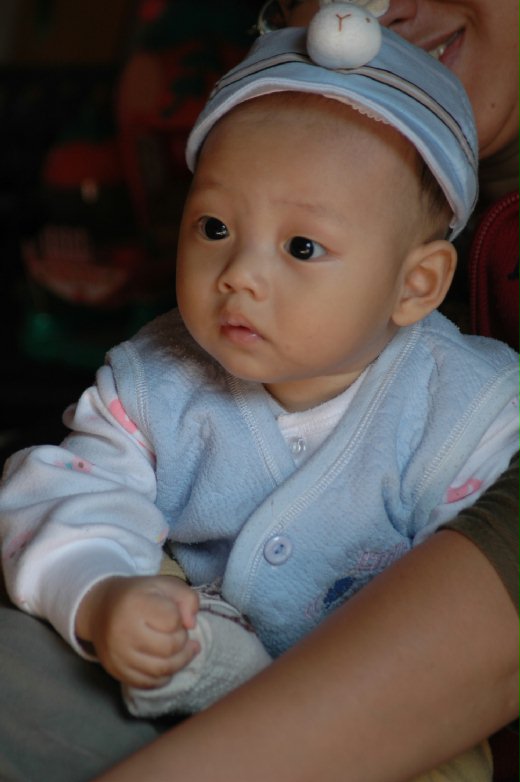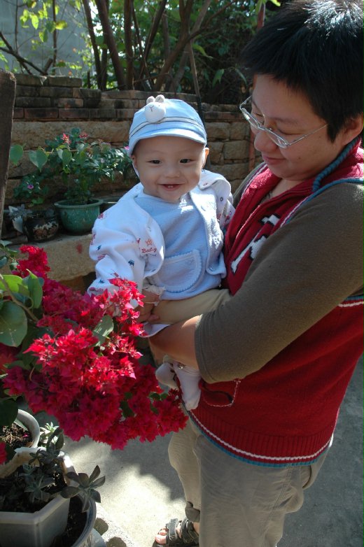 照例幫小豬拍了不少照片,之前忘了調整感光度和畫質,照片顆粒明顯。這次總算想到要修正,因此照片拍出來的效果相當好。小豬皮膚白裡透紅,粉粉嫩嫩的,應該會讓狂買保養品的阿姨們粉羨慕,他的表情和笑容很可愛,小豬爸非常滿意,嚷著要送小豬去參加小小摩豆選拔,還說一定會得名次,大家的看法勒?