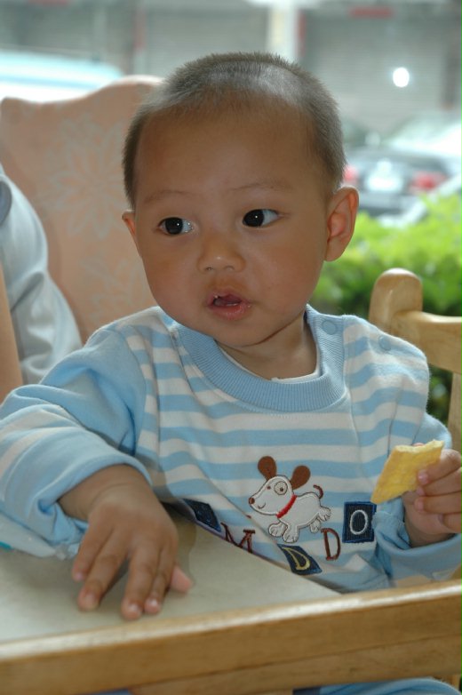 第四天是親人聚會,不曉得是不是這幾天太HIGH,後腦杓起了不少紅疹,乾脆讓姑姑幫他理了平頭,果然,小豬疹子減退不少,也從秀氣的小公主,變MAN不少,乍看之下還以是四五歲的小男生,忘了他是剛滿周歲的小寶寶!不愧是百變小豬
