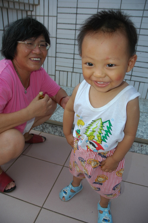 七月回金門,親眼看到小豬不用人扶,自己趴趴走,讓小豬爸、小豬媽超級興奮,但高興不到二十分鐘,就累趴了! 小豬走路的方式很好笑,他的平衡感還抓不準,走路時,兩隻手舉到一半,像裹小腳的老阿婆般扭扭捏捏,維持身體平衡,卻還是跌跌撞撞像喝醉酒,有時身體一歪,便倒在地上。 這隻剛學會走路的小豬,像喝了蠻牛精力無窮,稍一轉身他便跑得老遠,讓大人們疲於奔命。平時外公外婆帶小豬就像隨扈般,得亦步亦趨。這次小豬爸媽一回去,也被迫當了隨扈,一起跟著小豬團團轉。本來小豬爸媽對隨扈都沒啥好感,但當了四天隨扈後,也同情起他們來。 不過,平心而論,照顧小豬還是比當隨扈辛苦,因為隨扈保護的對象,不管是什麼大人物,總是可以商量的。咱們家的小豬,卻不照牌理出牌,而且小豬還不會說話,和他溝通只會哇哇叫,得打起十二萬分精神隨時注意。幸好,小豬也有走累的時後,這時他會走到大人身旁,主動「抱大腿」撒嬌要人抱抱,可愛的樣子,可是任何大人物都比不上的。 |