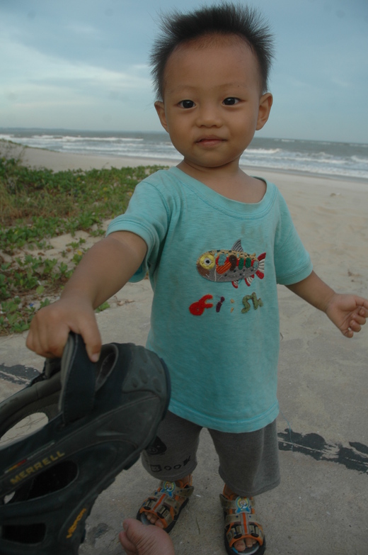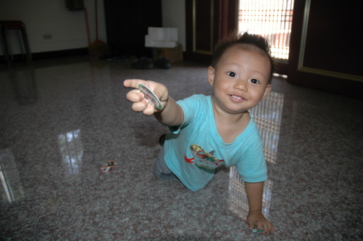 小豬也有了準哥哥的架勢,以往小豬的專長就是不是要人抱,不然就是哇哇叫,但慢慢的也會幫忙。例如,吃水果時,告訴他拿給阿公,小豬便會把蘋果拿給阿公。上次到海邊玩,小豬爸要他「把鞋鞋拿給爸爸」他也懂得把鞋子拿給爸爸,雖然鞋子感覺很重,小豬還是賣力完成任務,挺懂事的。
