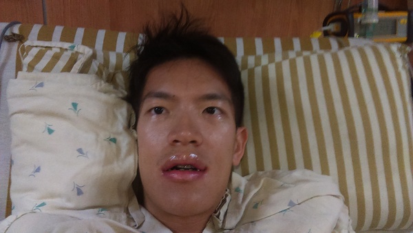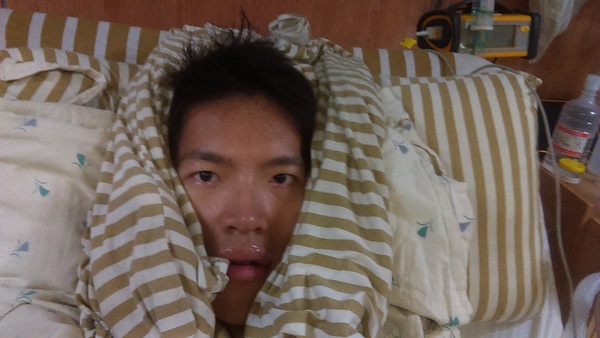 上面這張是醫護人員幫我冰敷後的自拍。