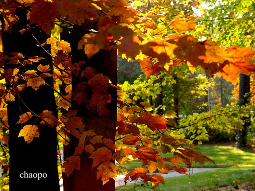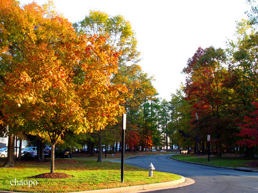 清晨大地總是罩上一層白霜,樹葉也從鮮綠轉成繁花似的金黃橙紅,