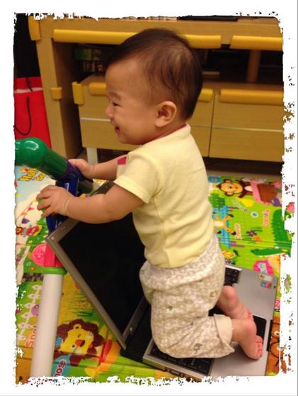 而且妳跪的還是筆電的鍵盤,這可比我高級多哩,