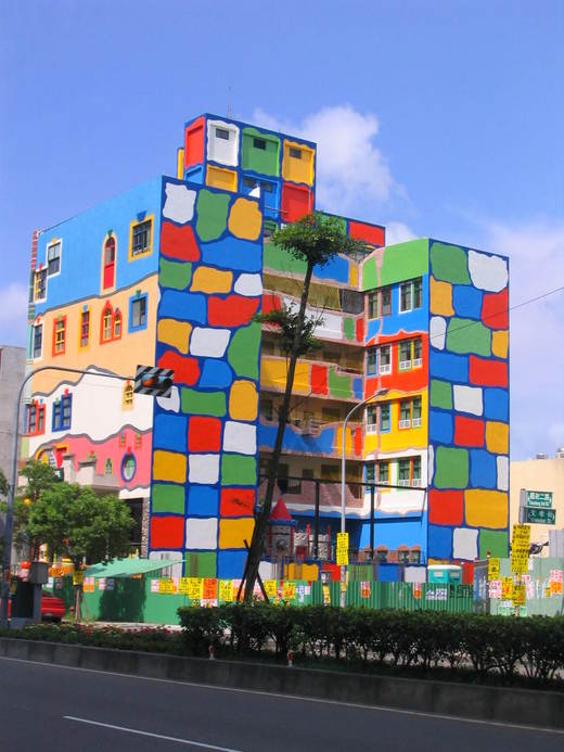 某次到竹北找姐姐用餐時,無意間發現附近有間彩繪建築物,讓我想起當初到維也納蜜月旅行時,曾短暫參訪著名的百水公寓,繽紛的色彩與豐富的造形讓人印象深刻;不同的是維也納的百水公寓是國宅,而竹北這棟建築物卻是間大型幼稚園。