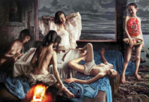 網路盛傳一幅旅居加拿大中國畫家劉溢的油畫,有四名裸女在打麻將,旁邊站著一個女孩,取名為「二○○八─北京」。表面上,油畫代表北京將舉辦奧運,經解讀後,竟暗含大國間在台海問題上的博弈之意。