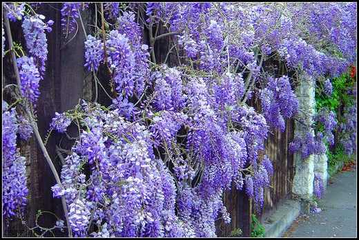 第一次看到紫藤花,是在開車經過一戶人家,見到攀過牆頭,吊掛在牆上一整片的紫,驚艷之餘,立刻回家取來相機,站在花前,拍了一堆相片,一直很難忘那天的快樂,也一直希望,自己的園中也能擁有一片紫。