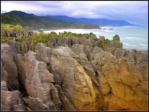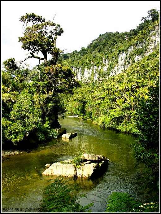 過了「Arthur’s Pass」景觀完全與東部不同,蒼鬱的樹林,如茵的綠草,連牛羊都看來有精神了。「Greymouth」是我們的目的地,純樸的小鎮,寧靜安詳,加上是週末,冷清的街道上,湧進了我們這群觀光客,頓時熱鬧了許多。