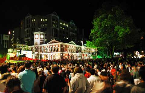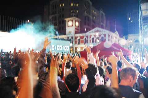 還記得去年在台北看101的煙火,竟又到了倒數計時的時刻,今年只能在基督城,參與洋人的歡樂倒數音樂會。在教堂廣場搭建了舞台,歌手一個接一個上場,氣氛熱鬧,雖然聽不懂他們唱什麼,但是輕快的旋律,讓年輕人興奮地舞著、叫著,我們也感染了熱力,心情high了起來。天空飄下彩紙,大家像小孩子一樣,仰頭叫著、抓著。終於要倒數計時了,10、9、8、7、6、5、4、3、2、1,YA!風笛聲適時響起,煙火在五層樓頂噴射,歷時只有一分鐘,但是歡樂的氣氛籠罩現場,大家客氣的互祝新年快樂。紐西蘭人較保守,沒有人相擁KISS,只是淺笑祝福,陌生人之間仍是淡淡的,當風笛吹起了[魂斷藍橋]一曲,正式告別了2008,我的眼淚忍不住滴落,心頭有小小的失落,揮別2008走入歷史了。