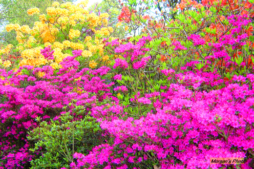 基督城的櫻花有三種不同的品種,花期不同,顏色花瓣各異,所以大約賞花期,可以延長一個月,但是以海格麗公園,最壯觀,最有名。當櫻花期結束後,就輪到杜鵑和石楠登場了,杜鵑是灌木,在台灣多見於台北的安全島上,陽明山和台大校園也有大面積的栽培。至於石楠就比較少見於平地,在台灣的高山上,春天時節花開滿樹,花朵碩大、艷紅,有人叫它山杜鵑。在基督城石楠的顏色很多,在坎特伯里大學的校園中,有一個艾倫花園,種了ㄧ大片,當仲春時節,滿樹球花甚為壯觀。我稱之為球花,主要是因為她的花朵是由十朵組合而成,顏色豐富有深深淺淺的紅、嫩黃、艷橘,爭奇鬥艷,熱熱鬧鬧,散步其中,心情愉悅舒暢。