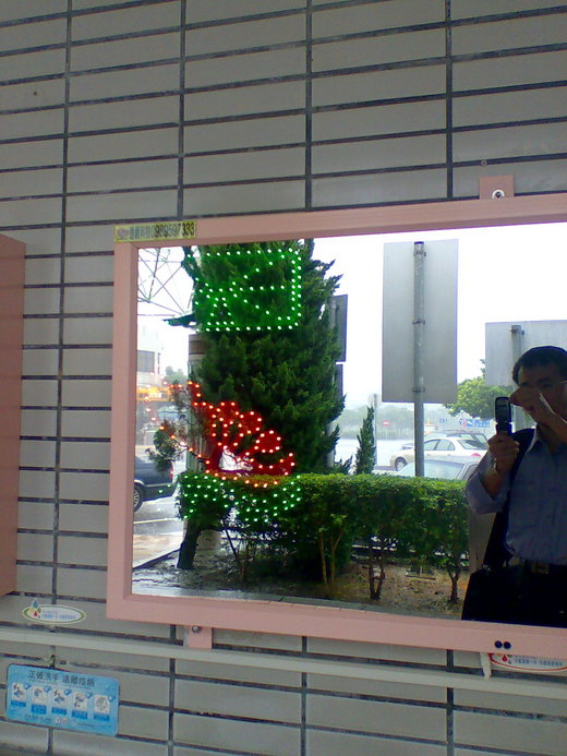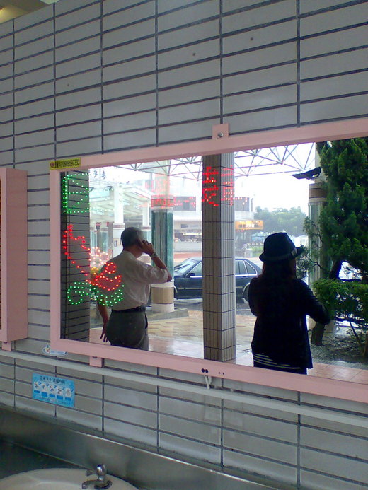 哪天路過湖口休息站,到廁所一下,出來的時候,新發現一個廣告 LED燈飾上,洗手槽上的鏡子上,真是新鮮有創意,如附件照片,如果這種廣告,放在公司的廁所出口,要公司內廣告辦活動或是宣傳重要事情,或是外面產品廣告,一定是很棒,現在不是有電梯廣告,但是那個只有再辦公大樓,如果是住透天,或是有錢的鄉下人,不需要搭電梯,但是他們一定要外出,一定要上廁所,像是土產,黑橋牌香腸,小林煎餅,或是喜餅廣告,一定是印像非常深刻