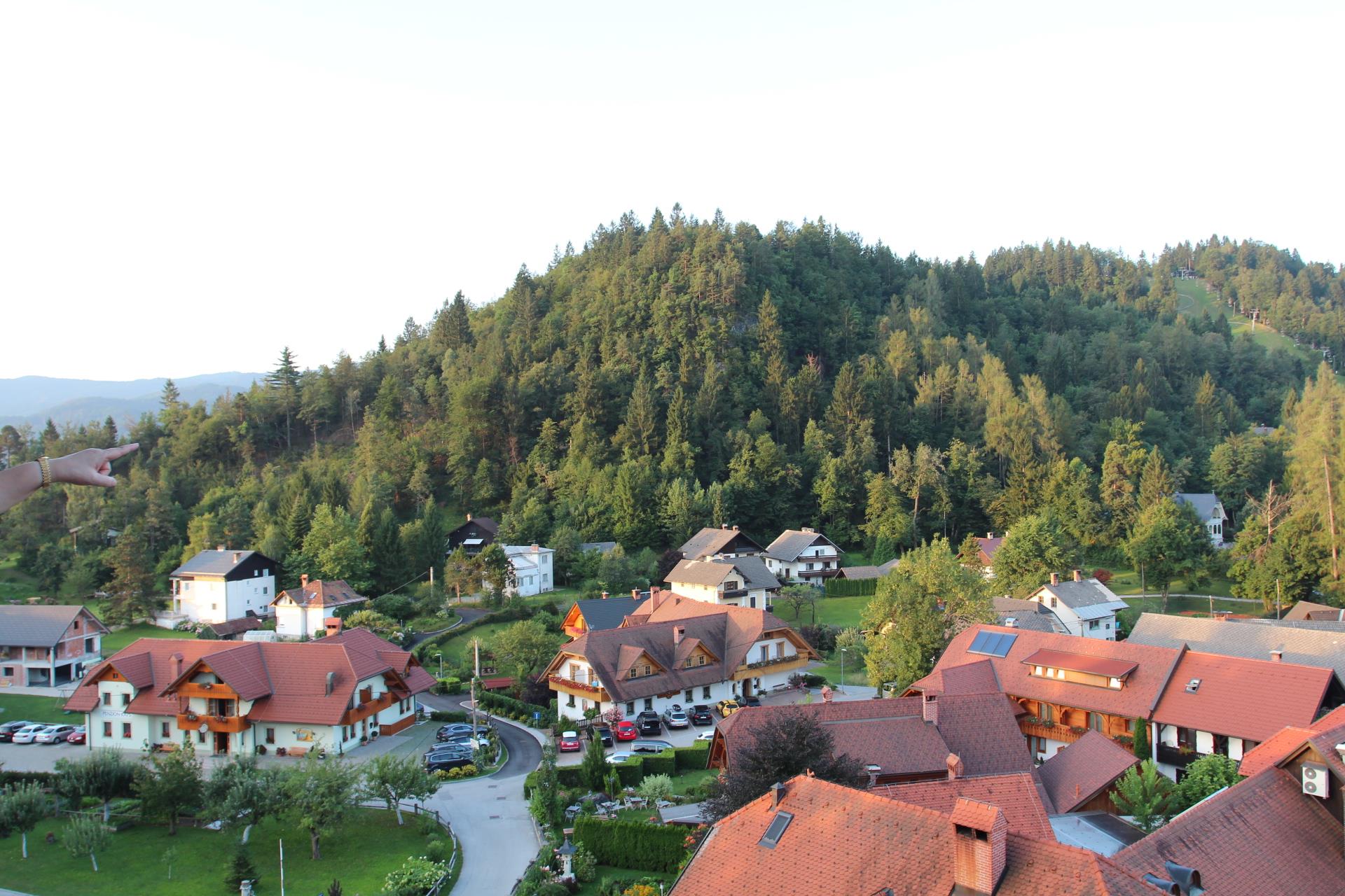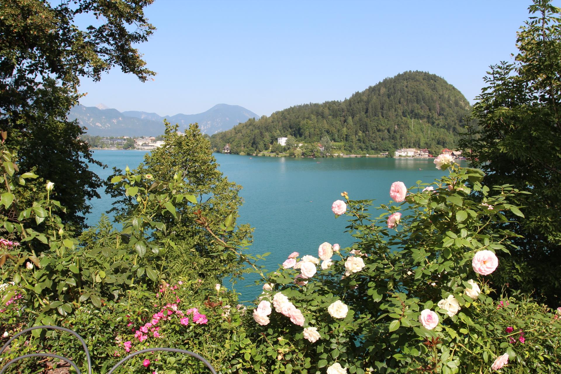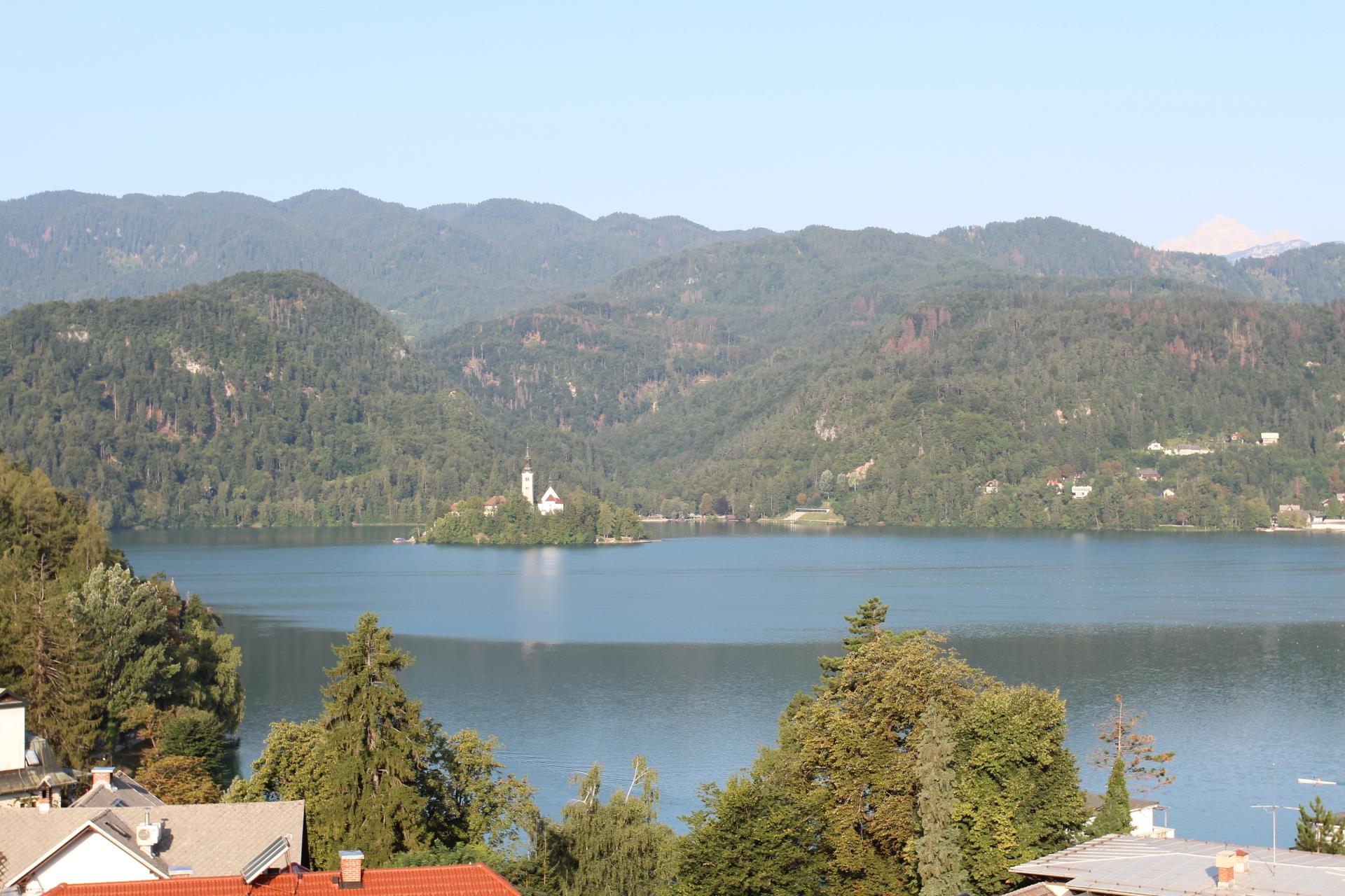 ▲巴爾幹半島的第一餐,是在布蕾德湖旁餐廳,享用鱒魚餐,從餐廳看出去的湖光山色。
