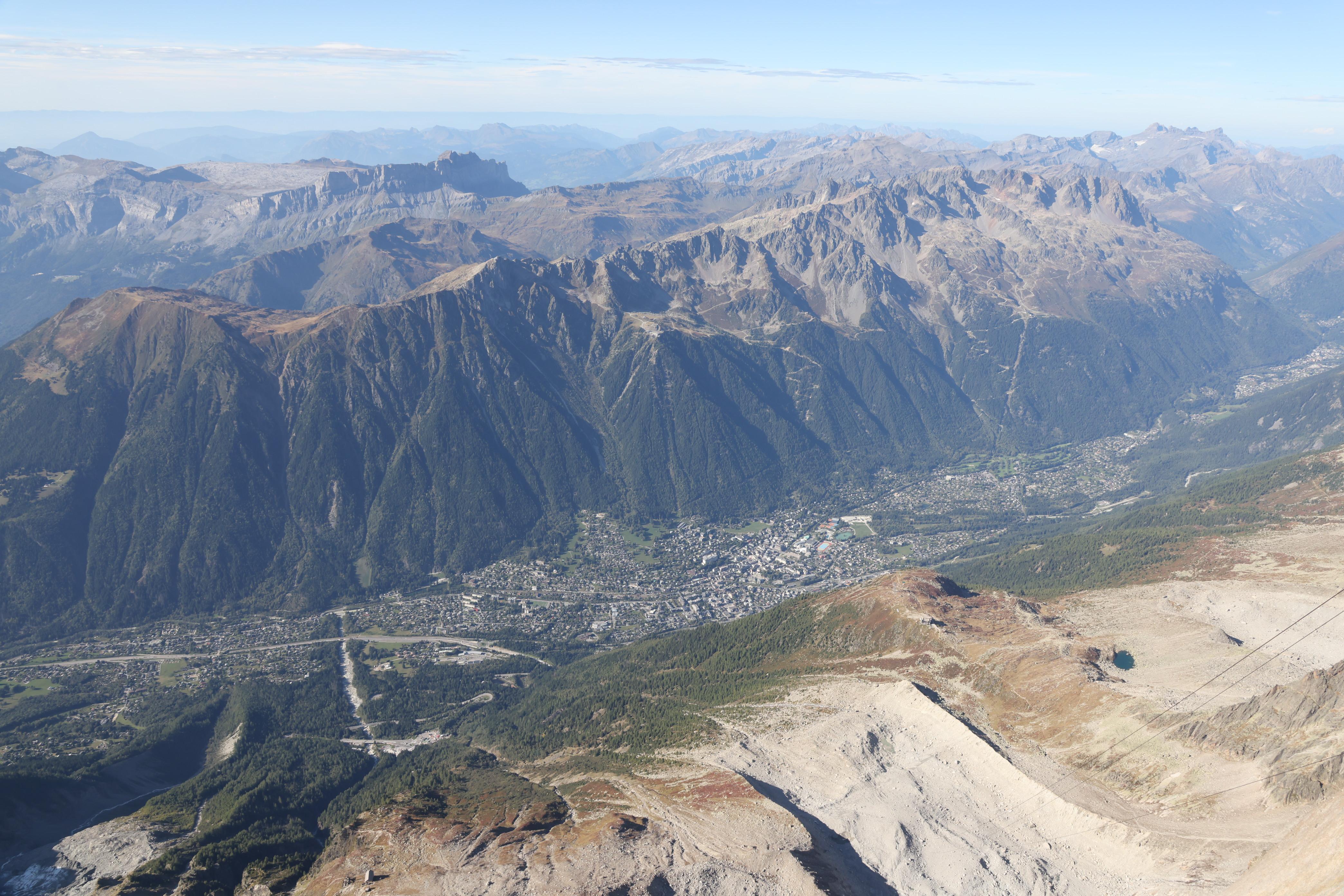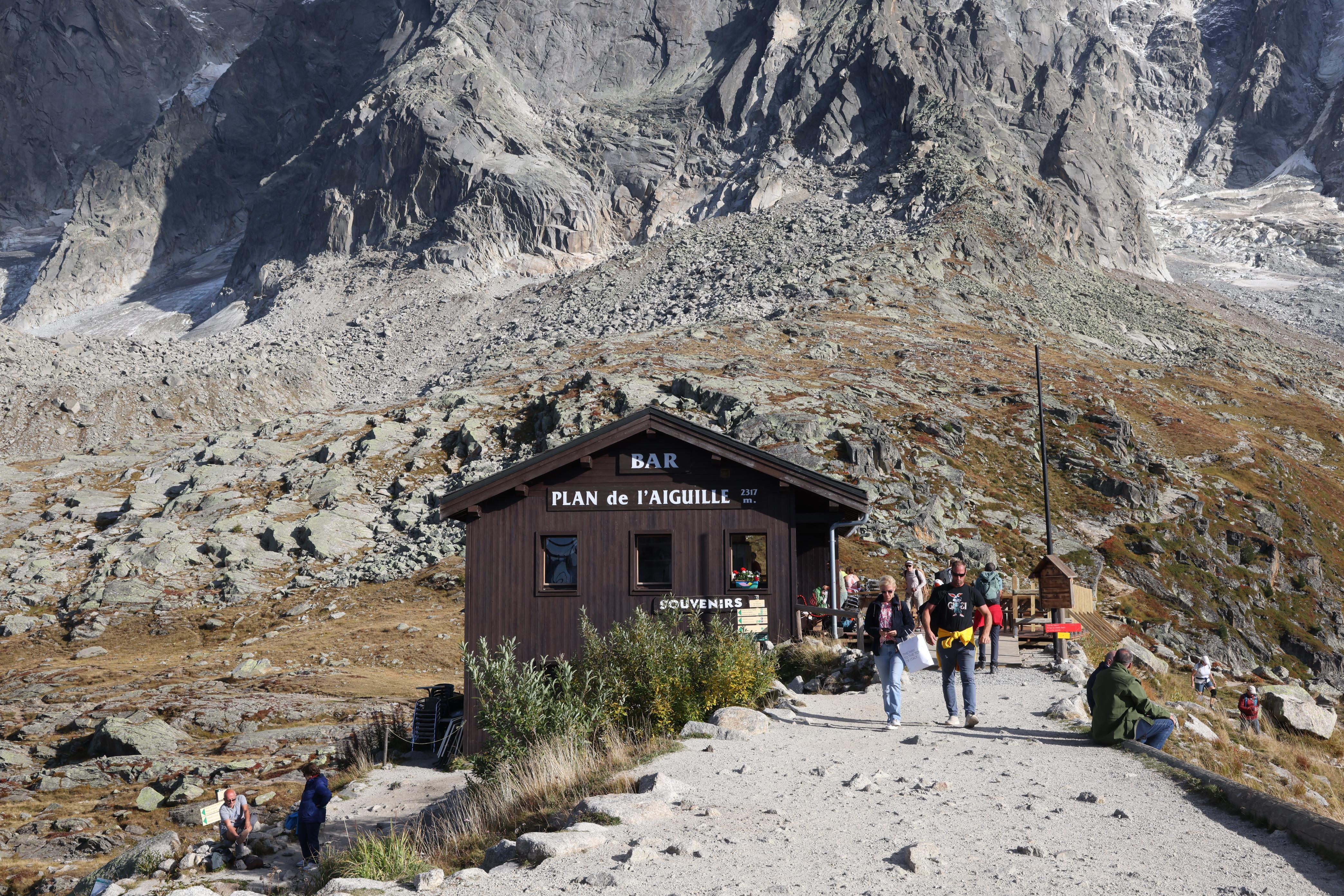 ▲▼由南針峰俯瞰霞慕尼(上),及霞慕尼纜車中繼站Plan de l’Aiguille的小咖啡廳。