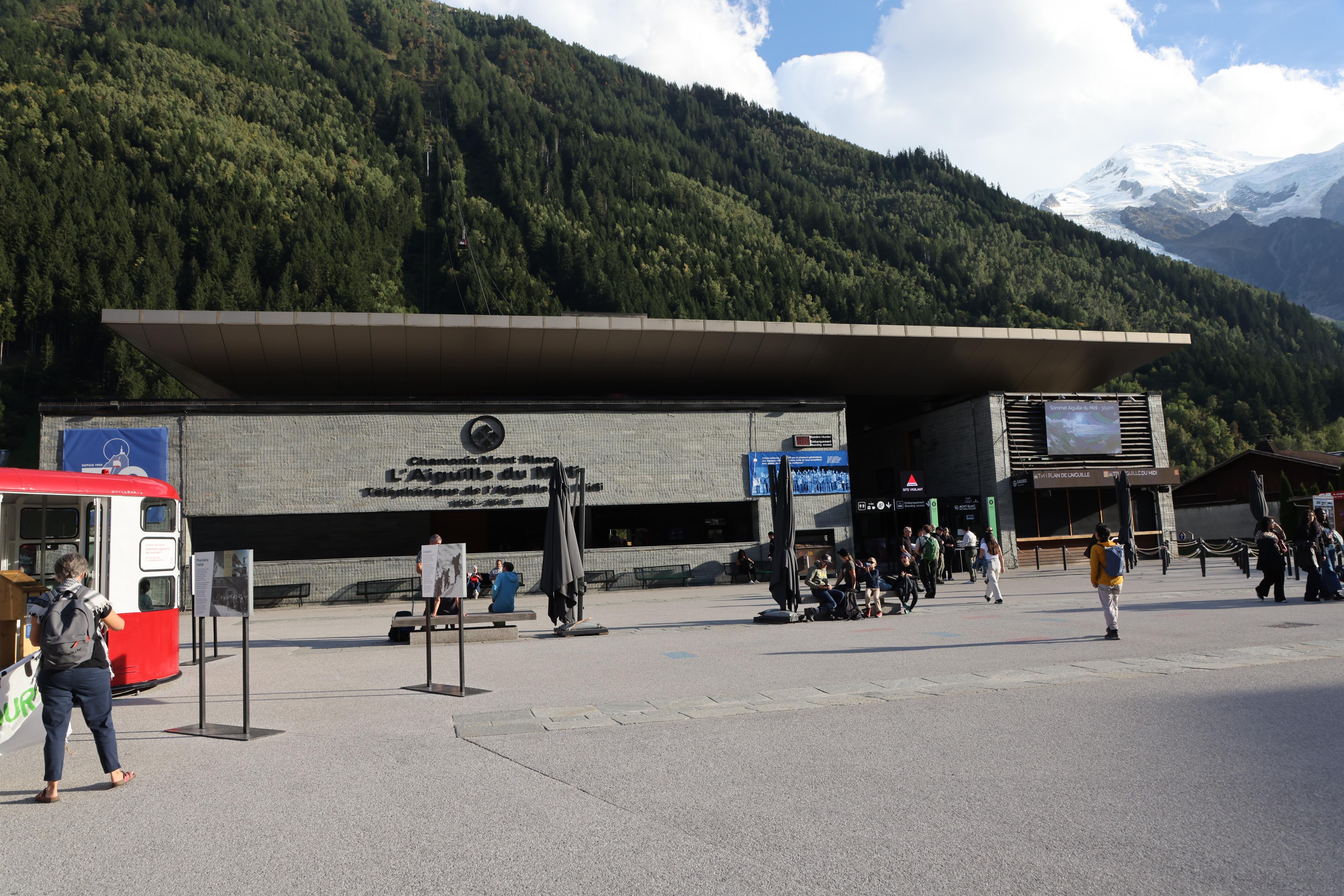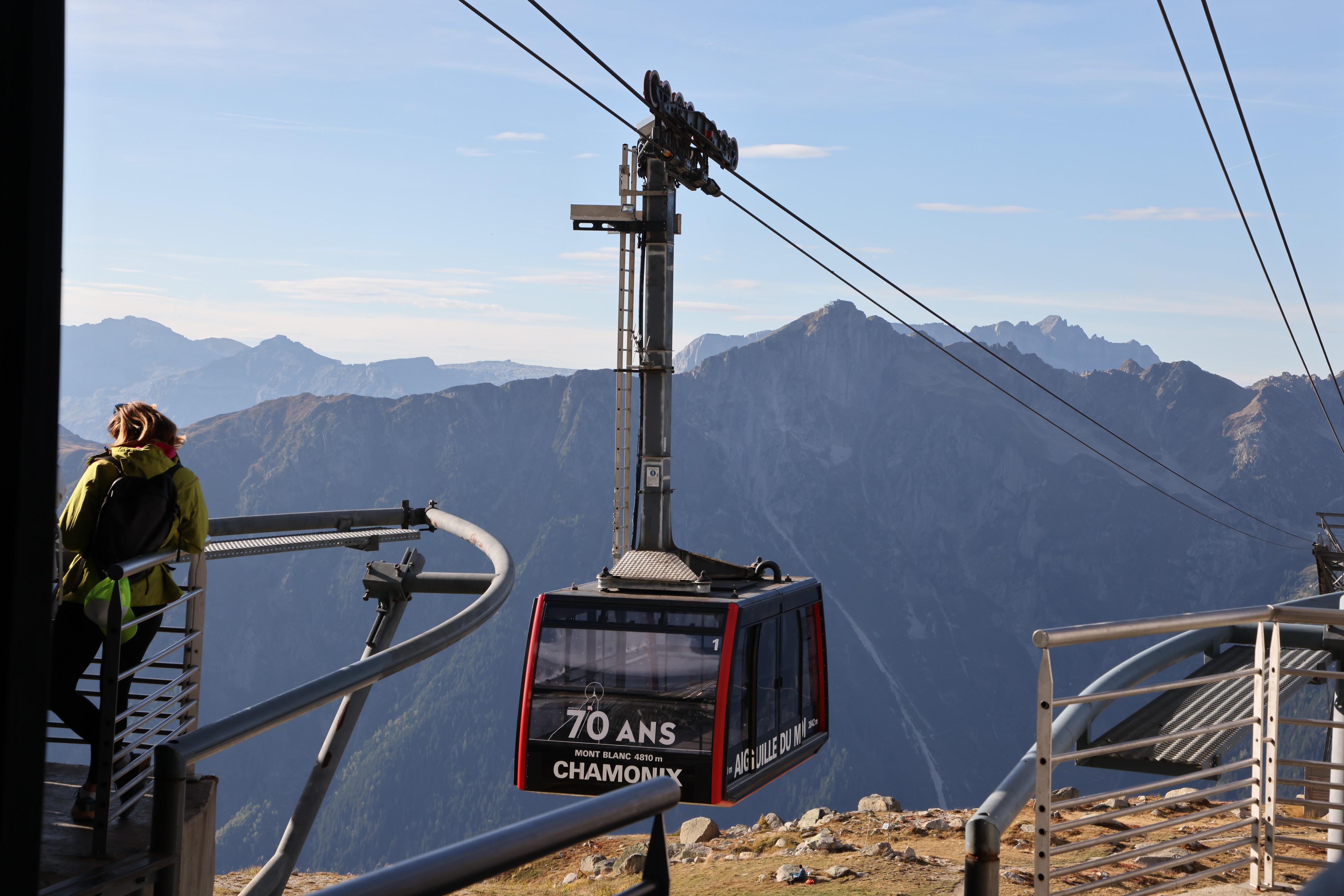 ▲▼霞慕尼纜車,可容70人(上),霞慕尼市區的纜車站,白朗峰依稀可見(下)。
