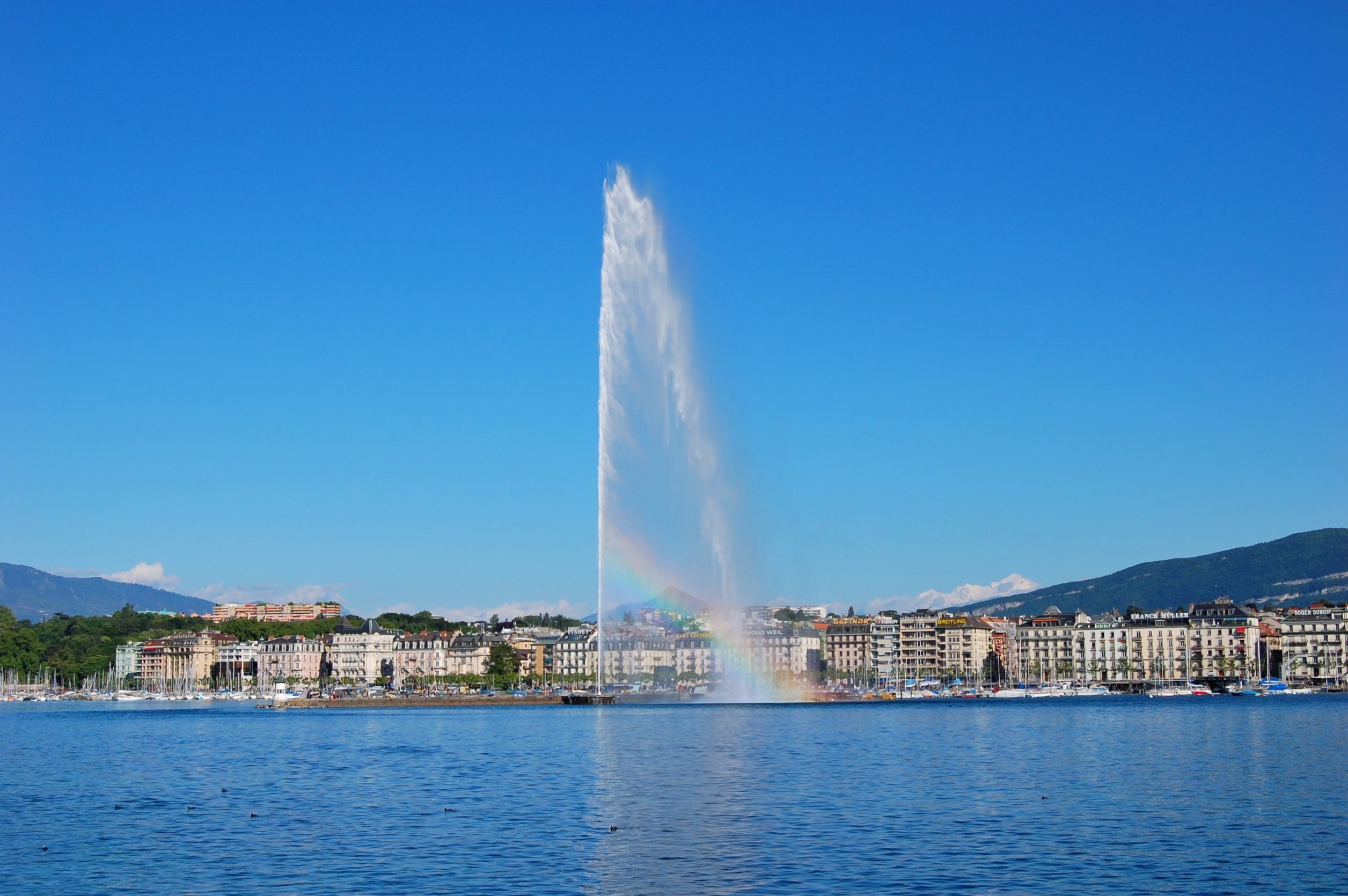 ▲從日內瓦湖噴泉附近,往東南方看,天氣好時,有機會看到遠山後,照片右上方,露出一小截的白郎峰,潔白無瑕,悠遠而神秘,令人無限嚮往。跟在南針峰看到的白郎峰,是同一面。