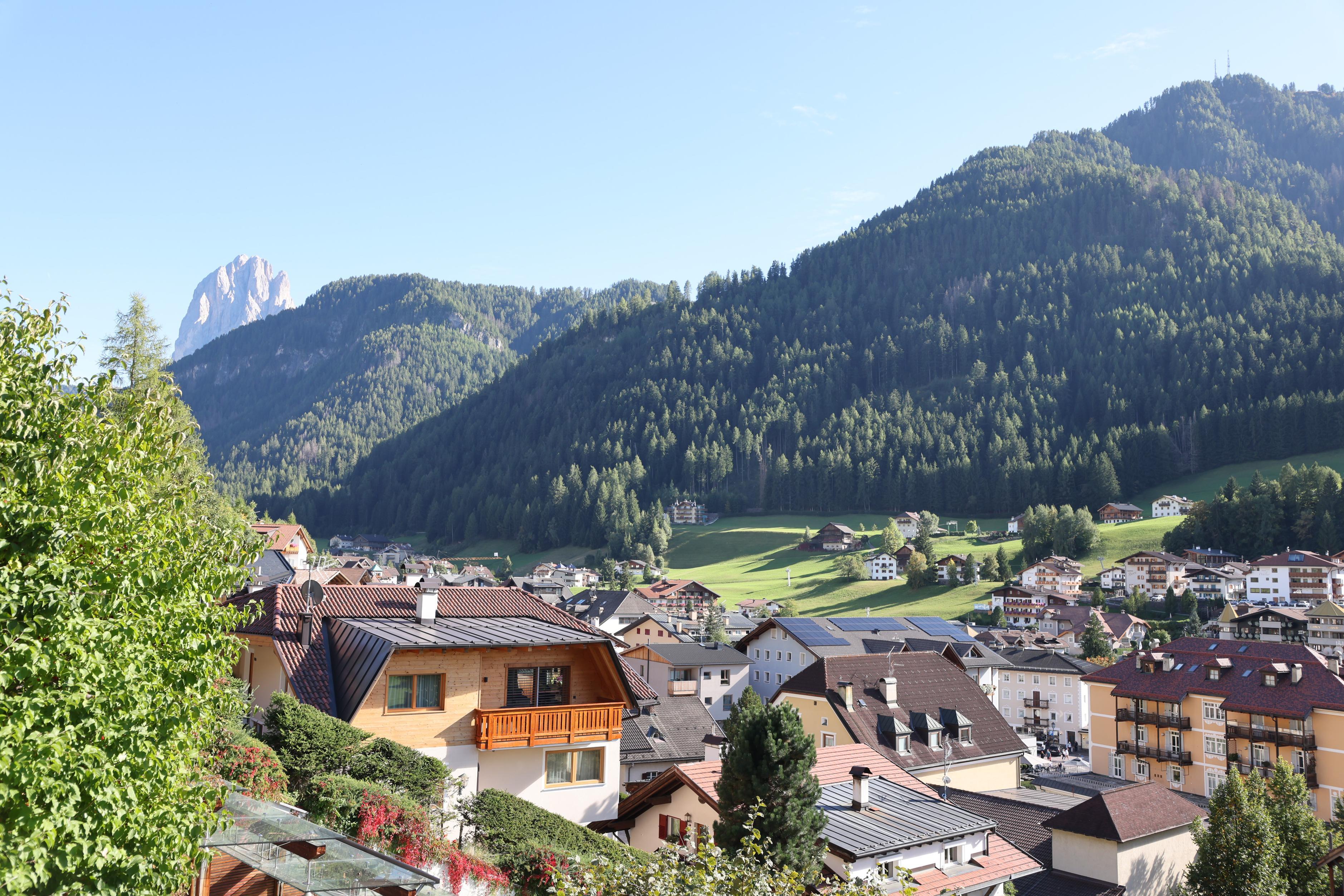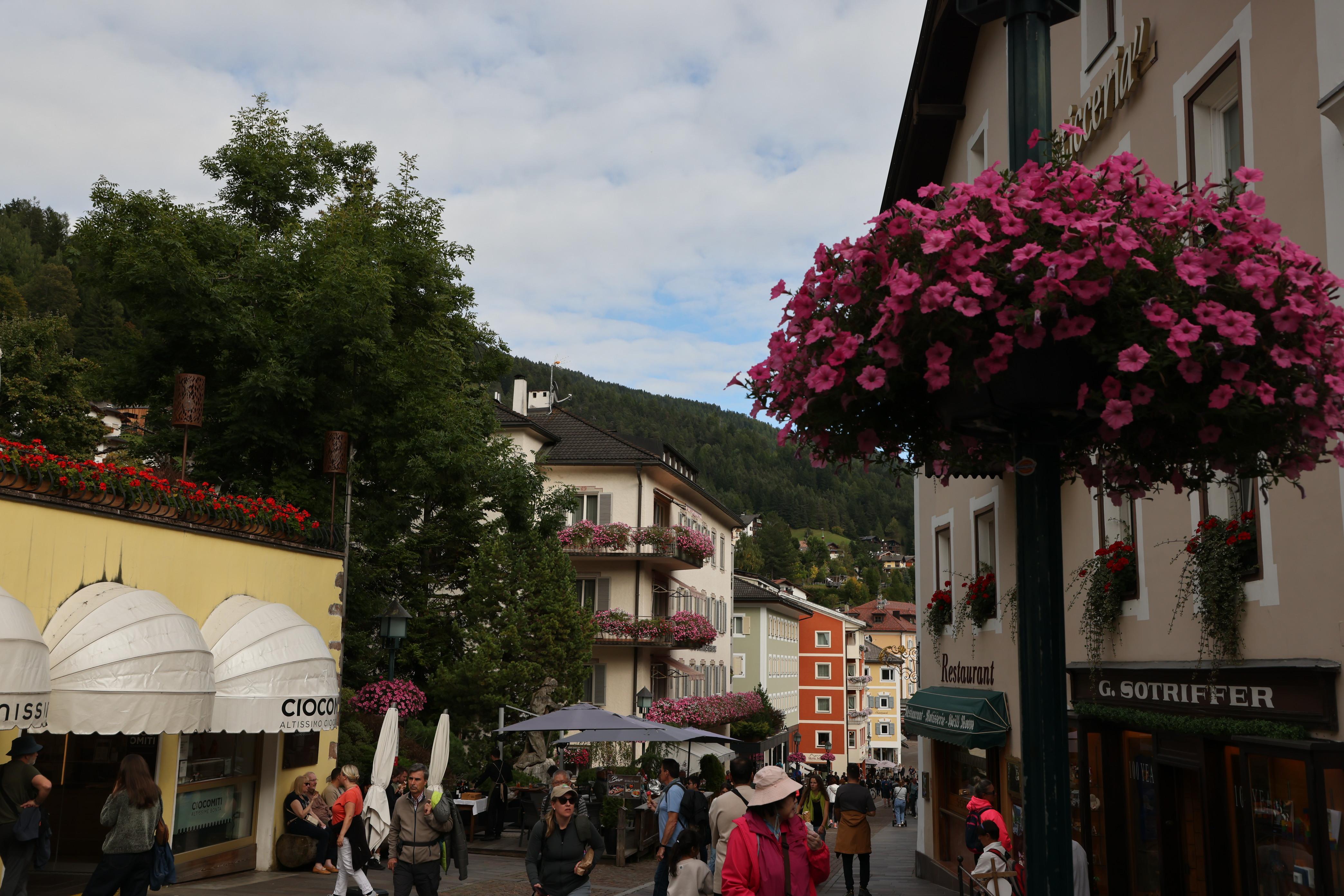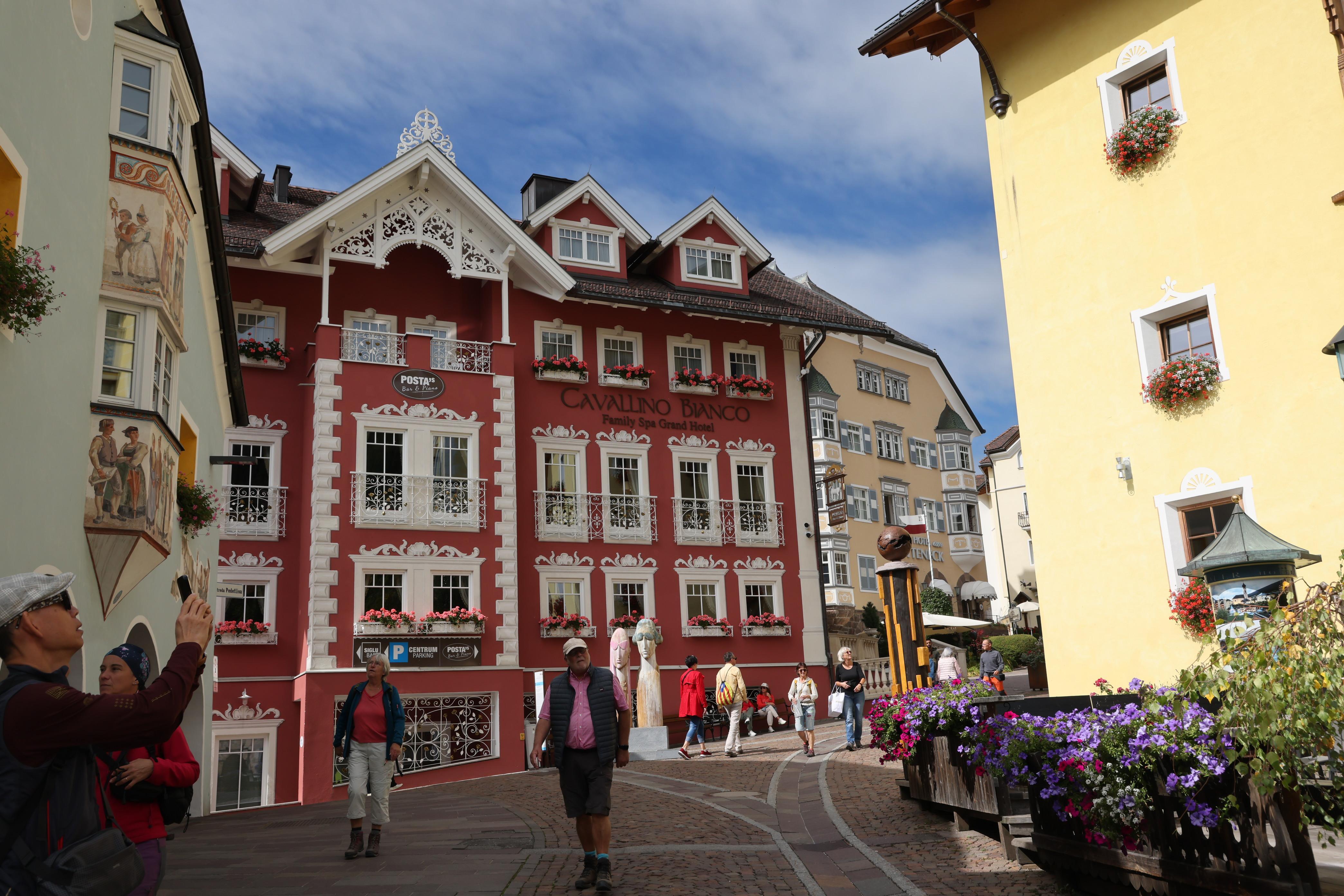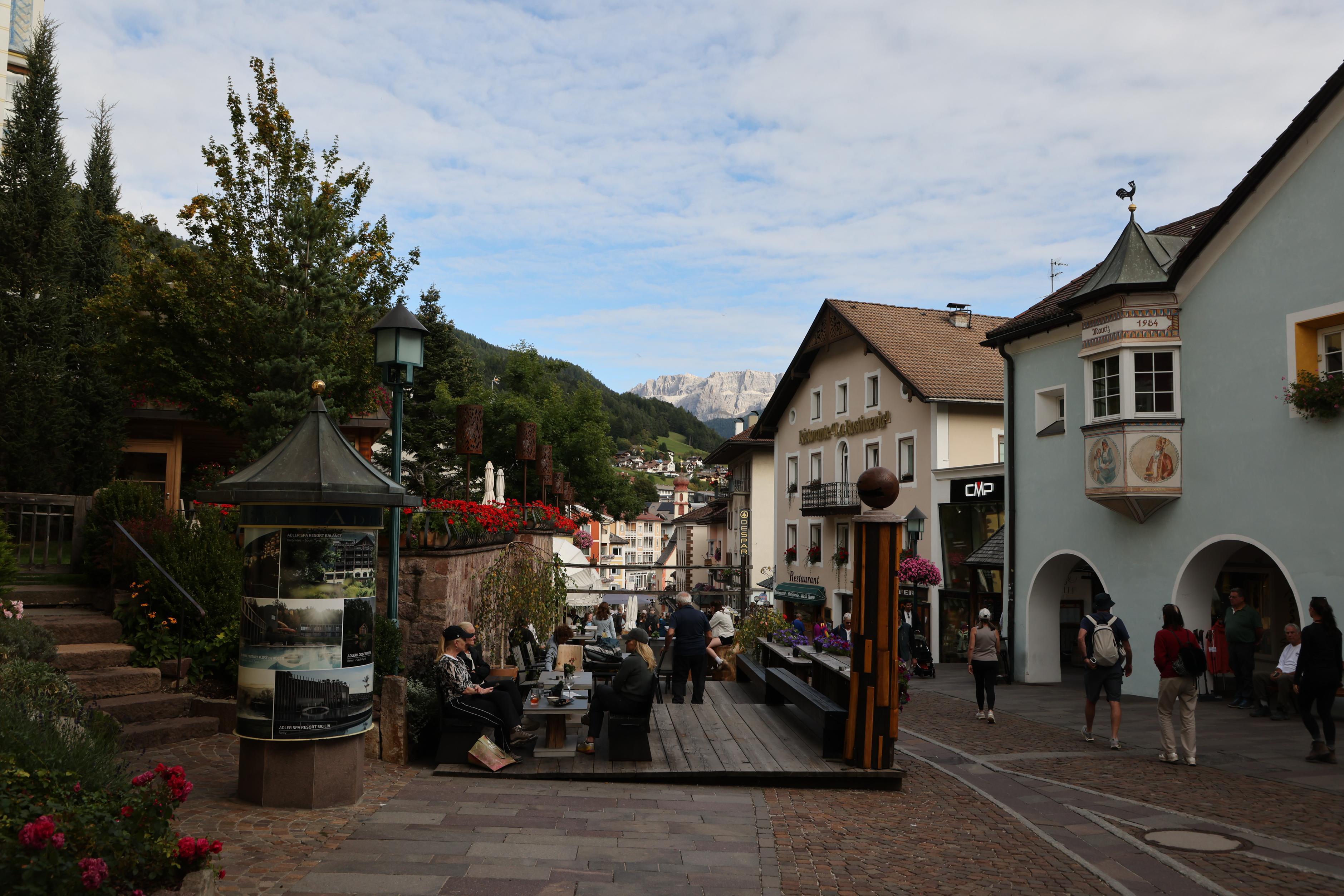 這個小山城名叫屋蒂耶(Urtijei),人口不到五千,在義大利的西多洛米堤(Dolomites),是登雄偉的刀背山(Seceda),和前往富內斯(Funes)山谷的中間站,這兩處景色都美的像首詩。中午先在此用餐,原以為只是路過,抵達前並沒太多期待,沒想到小山城的風情,尤其建築的繽紛色彩,卻讓人印象深刻,流連忘返。