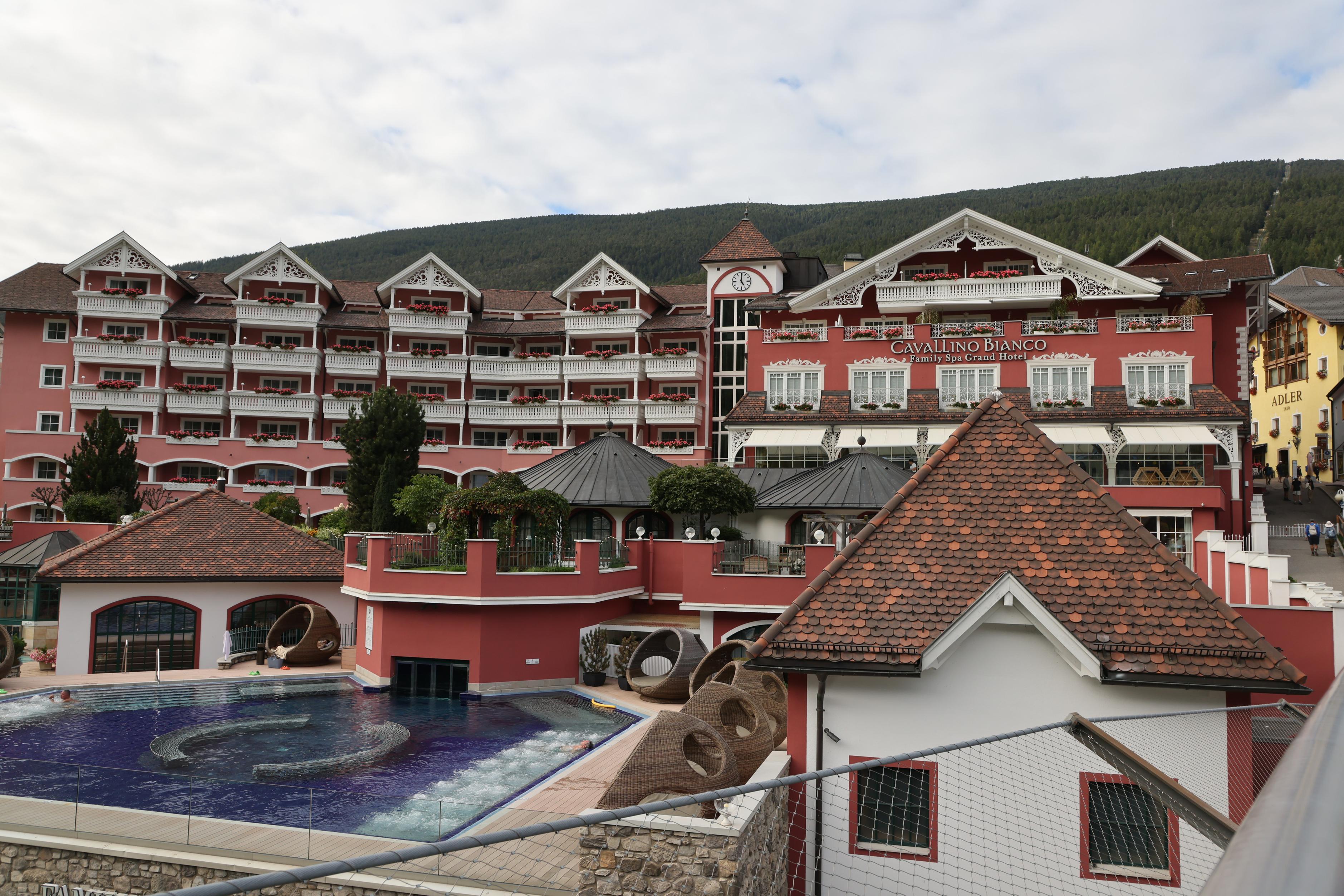 ▲外牆赭紅色的一家蠻大的水療渡假酒店。