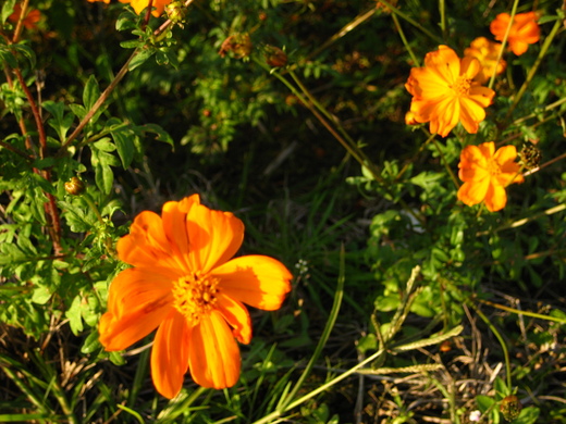 逛進河堤旁的荒野地,一脈橙紅自腳底向遠方鋪展,休耕的野地,不知名的草花四散開