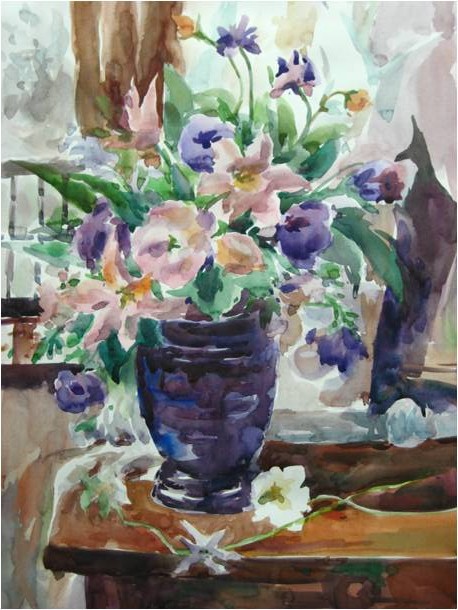 春天的意象是美的,興盛的,今年在台灣卻氣候多變化,身體真有那麼一點受不了,氣溫遽降,又下雨,學生到畫室上課也頗受影響,為學生示範濕中濕技法(臨摹名家作品),邊畫邊聊天,不知不覺就將一季春雨忘在室外........