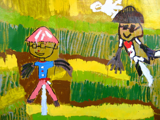 上星期是壁畫進行的第一次,五年級是先鋒隊,接著是熱情可愛的二年級,(為何以熱情可愛稱呼他們?因為這年紀的孩子還少所謂的功課壓力,因此總能忘情享受繪畫的樂趣)。