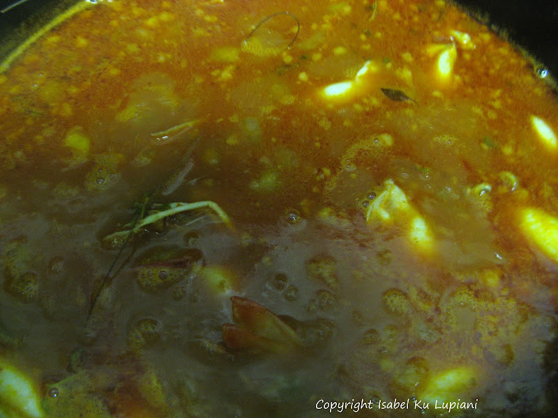 5. 加入蛤蜊, 烏賊, 魚類, 繼續加蓋煮10分鐘.