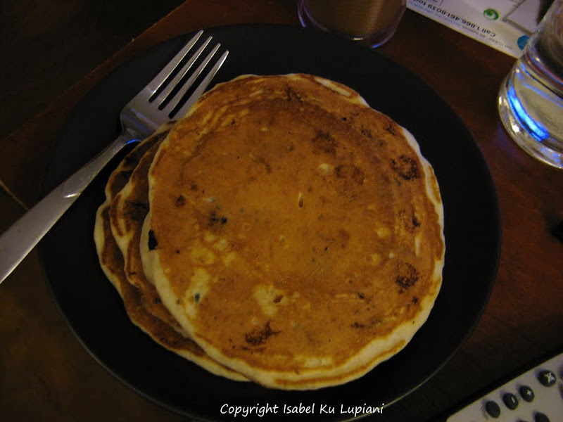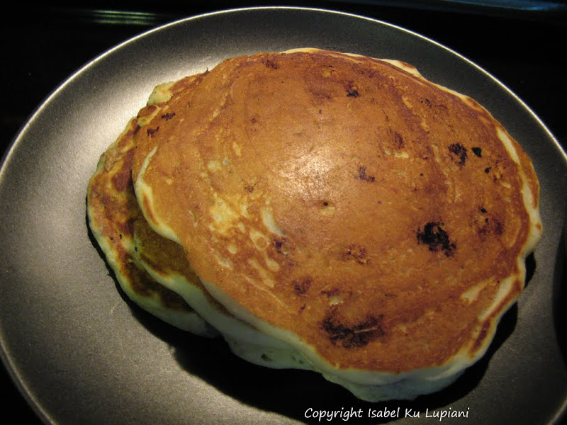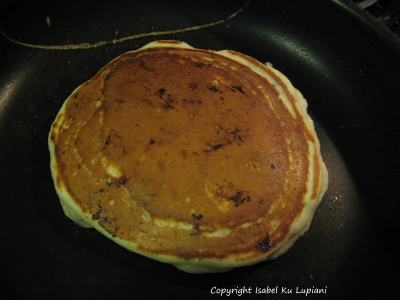 以前做鬆餅都是用現成的鬆餅粉, 但是後來嘗試從頭自己做其實一點都不難, 而且好吃很多. 上手之後就可以隨意變化各種水果口味, 或是巧克力. 要注意的地方是就像瑪芬(muffin), 鬆餅麵糊只要調到材料均勻結合, 沒有粉粒就可以了, 如果過度攪拌煎出來會太硬. 還有煎的時候一定要有耐心, 用中小火, 不然會中間還沒熟, 表面就焦了. 在舀麵糊的時候用量杯或大湯杓, 這樣就可以每一個鬆餅煎出來都差不多大小
