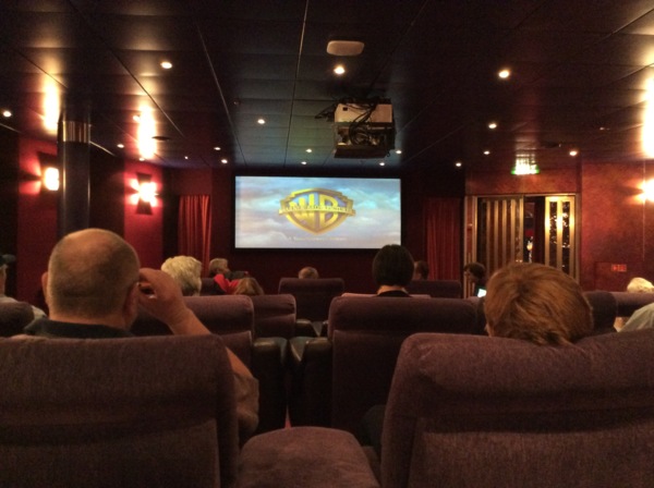 遊輪上幾乎每個小時都安排至少一種活動以上,通常我們會選擇看十點那場的電影,説是十點開演,但因為座位有限,我們總會早到十幾分鐘。這座豪華的電影院只有30多個座位,每天安排四場電影,愛看電影的秋香從不落掉,我也只好捨命陪君子了。
