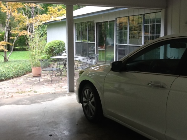 在芸娟家呆到天色黯淡,覺得應該離開了,卻又碰到學斌、徐京來,幾個人又聊了一陣子,已經八點多了。此時天色完全暗下來,我有點擔心自己尚未在如此漆黑中開過車,便匆匆忙忙說再見踩著油門飛奔回家,路上沒什麼燈,真的是漆黑一片,不過,很快便到了我家車庫,我像平常一樣,一邊轉彎一邊對準柱子,心裡只想著今天要停進去一些,免得車子屁股露在外面遭風吹雨打。眼睛僅一心看著柱子,沒想到腳踩的是油門,只一秒鐘,車子便衝撞過柱子,柱子應聲而倒,我緊急換踩煞車,整個人慌了,想到我開的是新車,只要有一點什麼瑕疵,可以想見不愉快的後果。