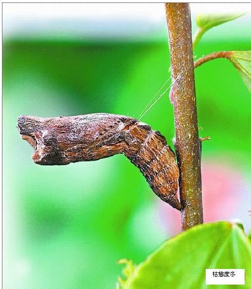 黃國揚表示,黃邊鳳蝶從一齡幼蟲的鳥糞狀,終齡幼蟲鮮明的警戒色,到以折斷枯枝的蛹體方式度冬,最後羽化如斑蝶的成蝶形態,來欺瞞捕獵者,簡直是個「擬態高手」,令人稱奇。