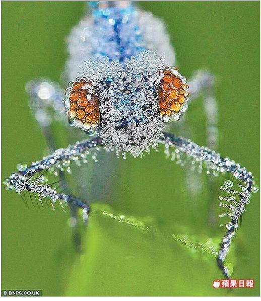 5年前,比利時昆蟲專家顧森斯(Patrick Goosens)意外發現了這大自然與昆蟲搭配而成的天然美景,於是常常在日出前就起床,捕捉這種光與水在豆娘身上的美麗結合。翻攝英國《每日郵報》