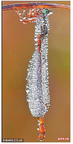 沾露蜻蜓 如鑲鑽石