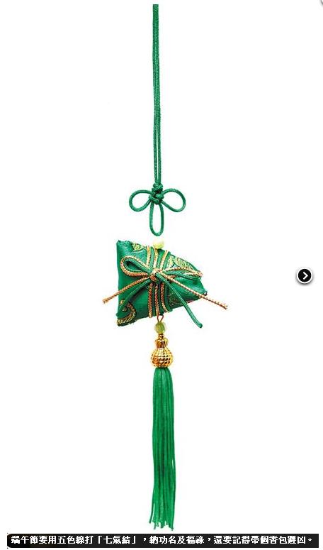 端午節:繫「長命縷」亦即五色線,記得要打七個結稱為「七氣結」,盡納功名、利祿、財富、壽喜之吉氣。帶香包趨吉避凶。