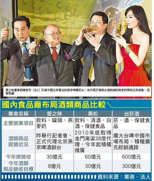 除酒類外,愛之味還計劃把旗下如燕麥奶、五穀奶、分解茶等熱賣產品,透過燕京啤酒、首都農業集團的在地通路,銷往中國市場。陳哲芳說:「估計年底前北京、上海等地,都可正式開賣。」