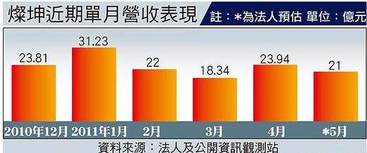 燦坤4月進行會員招待會進行折扣活動,刺激單月營收拉高至23.94億元,雖月增高達30.53%,不過,嚴文宏認為「不太滿意」,還要再努力,5月因天氣轉熱,預期冷氣單月銷售目標1萬台,將高於往年同期的8000台,而風扇、循環扇、箱扇等,單月銷售目標5萬台,將較往年成長3成,可望進一步支撐5月業績表現。
