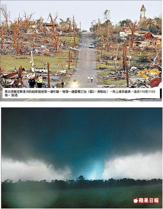 此外,堪薩斯州21日也遭多個龍捲風侵襲,在里丁鎮釀成1死,至少200棟房屋受損,該州16郡宣布進入緊急狀態。美國總統歐巴馬,昨也在空軍一號專機上向死難者致哀。