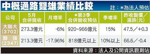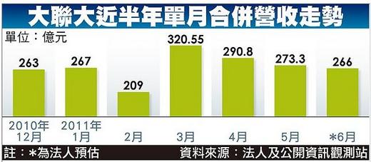 2011年 06月28日【蕭文康╱台北報導】市場看淡下半年全球景氣,國內科技業者第3、4季恐出現旺季不旺,不過,IC通路廠大聯大(3702)認為,歐美市場的確出現不少疑慮,但中國內需市場仍然持續成長,預期下半年營運仍屬樂觀,上、下半年比約45比55,而法人預估大聯大第3季將季增15%。